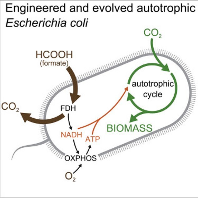 研究人員向大腸桿菌基因中添加一種轉化二氧化碳的酶,并且去除了用于代謝糖的其它酶,最終成功改變了它們賴以生存的“食物”來源。為了證明它們真的不需要糖來維持生存,科學家們把這些細菌放在實驗室里200天。當再次對這些細菌進行研究時,研究人員發(fā)現(xiàn)它們已經(jīng)成功地”進化”了,而且能夠在不需要糖的情況下生長。